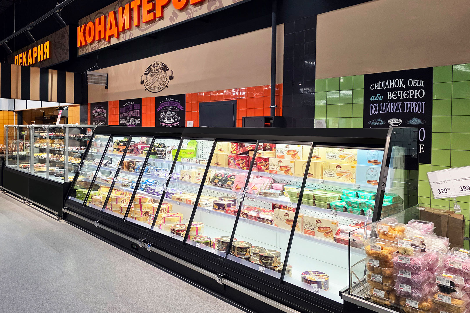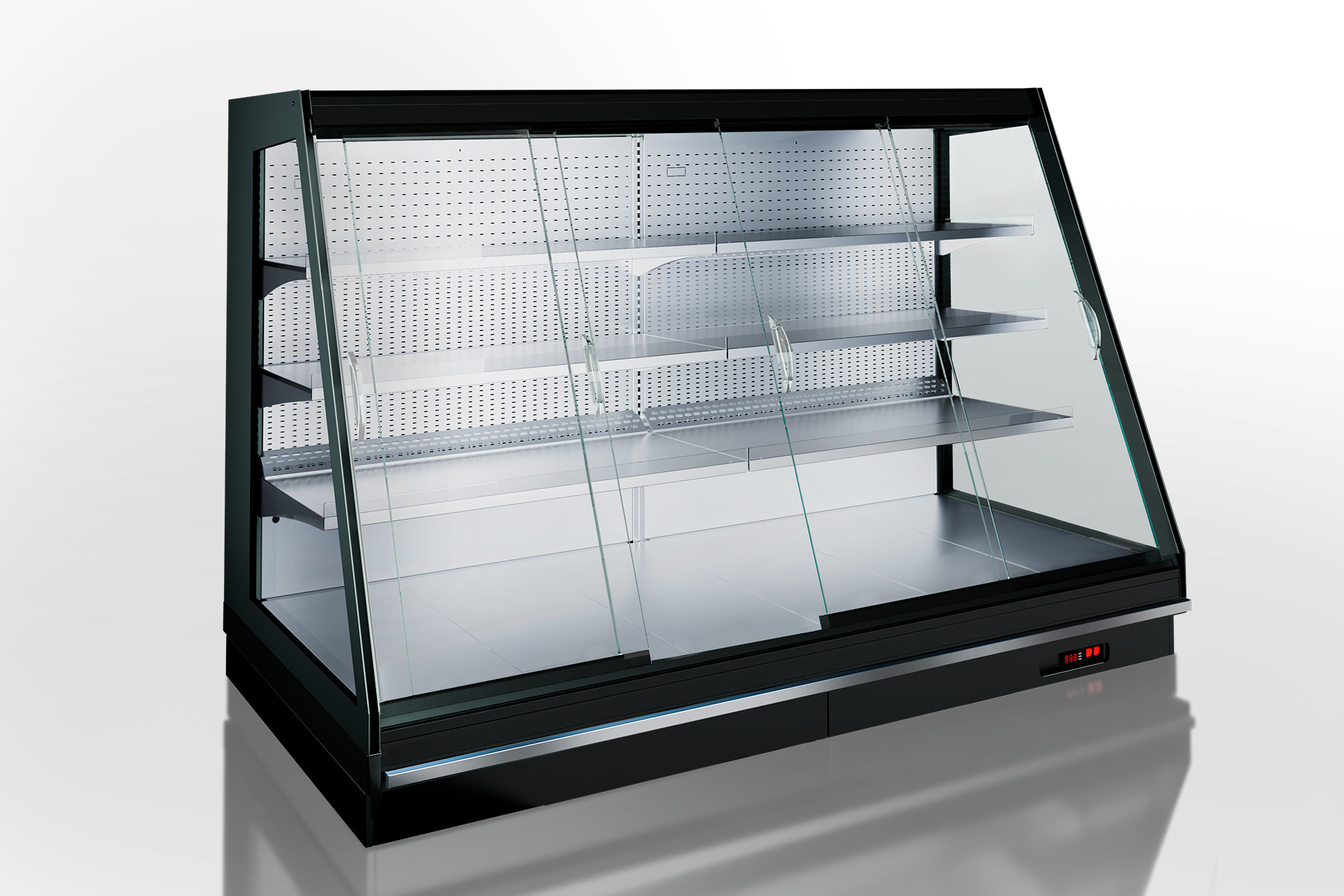 Semi-vertical counters with energy-efficient doors are for the stores of any format. For creating island-type zones end-face modules are available.