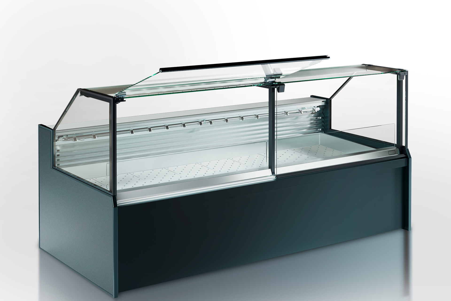 Specialized counter for fish-on-ice sales. Available in modification self for self-service.