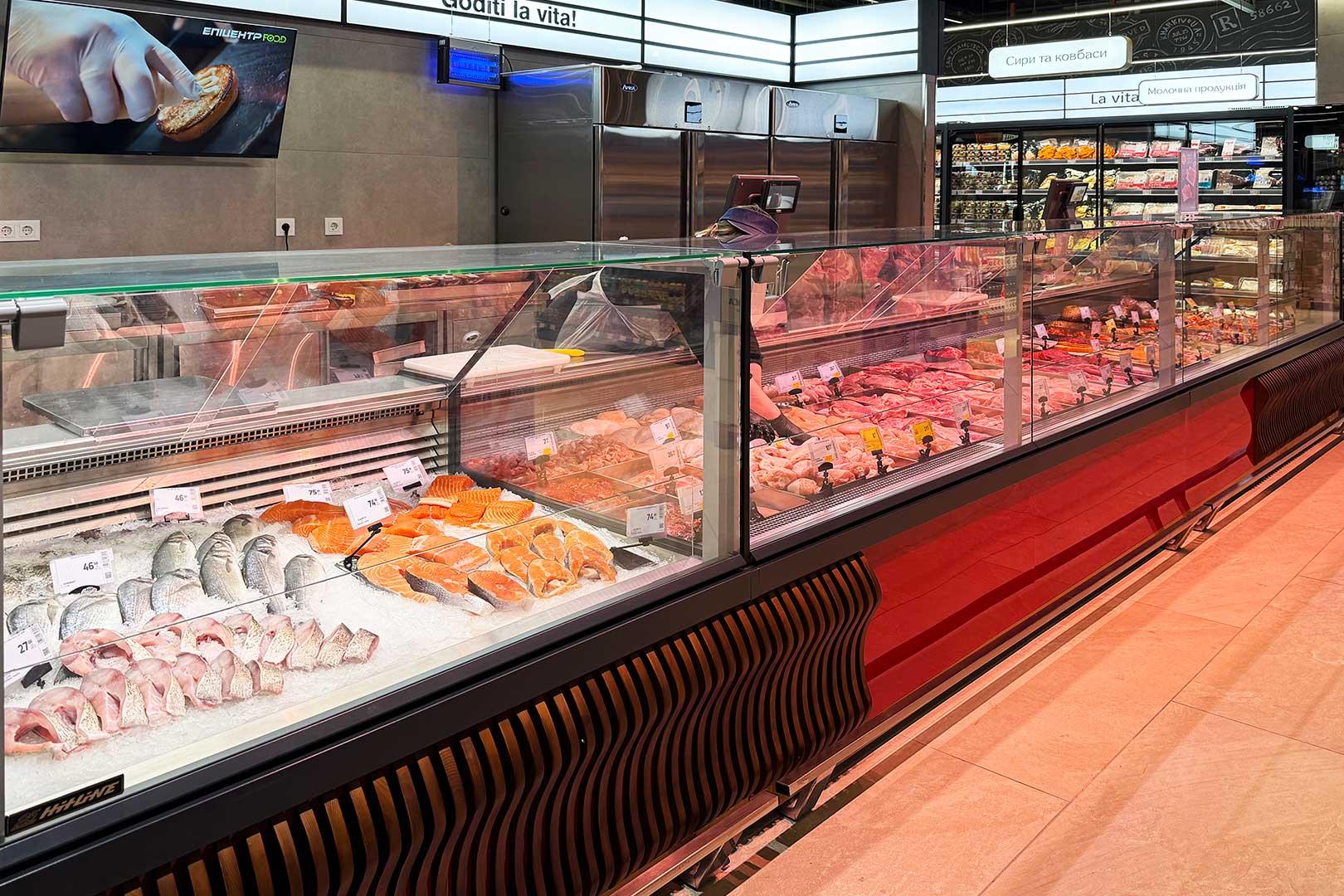 Specialized counter for fresh fish-on-ice sales. Available in modification self for self-service.