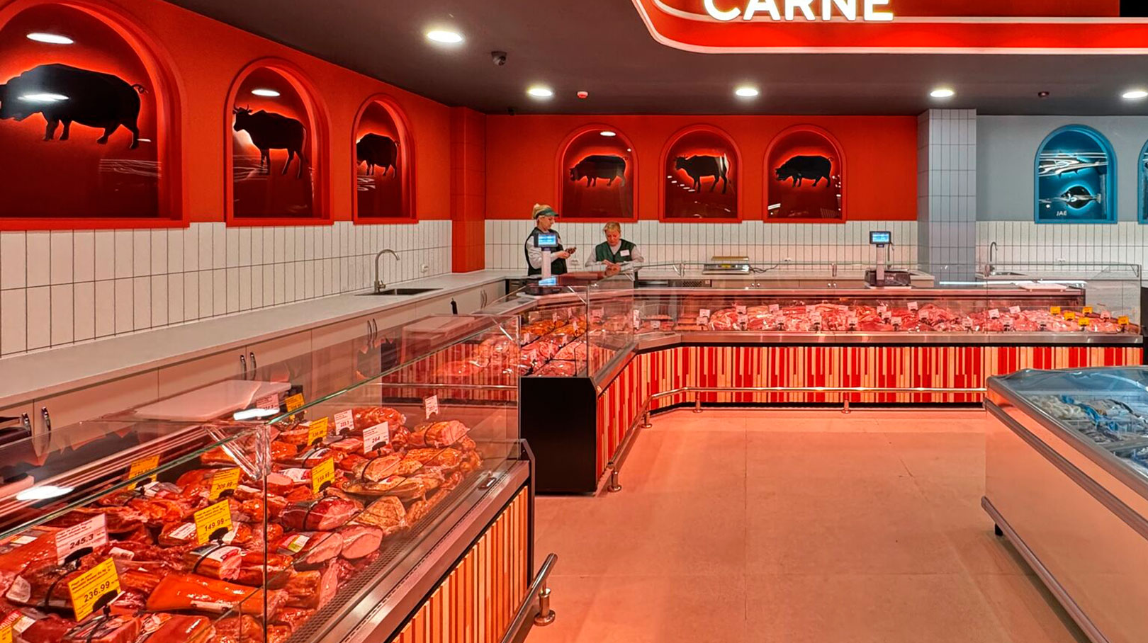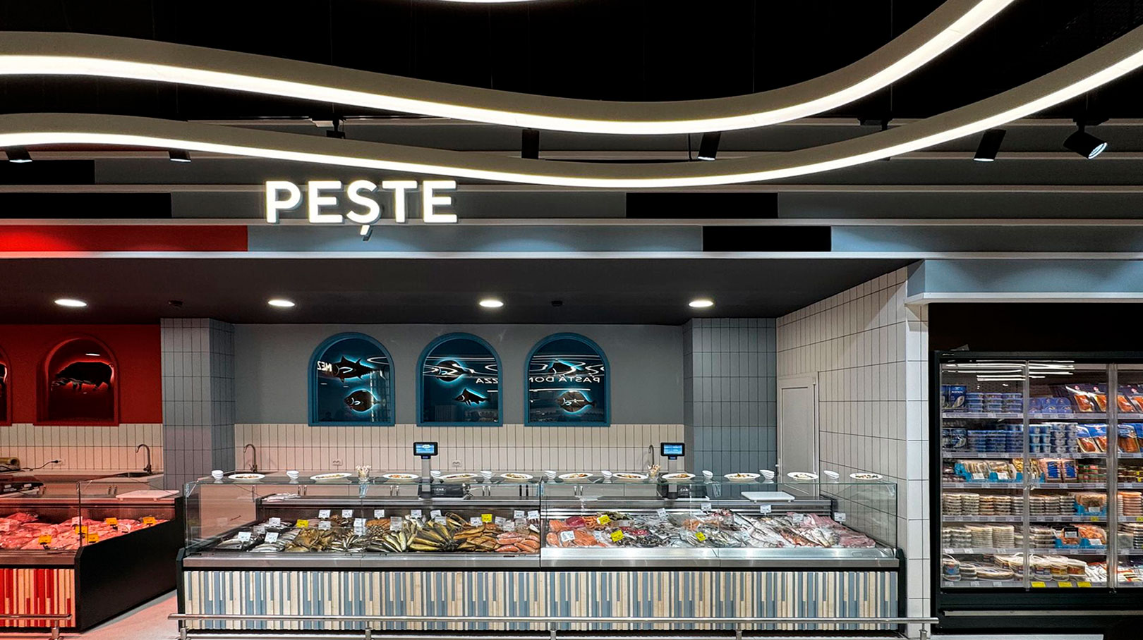- Specialized counters for fish and seafood sales