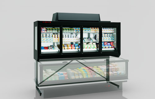 The spacious and open shopping floor resulting from the installation of semi-vertical display cases “Louisiana eco D” makes shopping experience as comfortable as possible allowing customers to easily see the desired department of the supermarket.